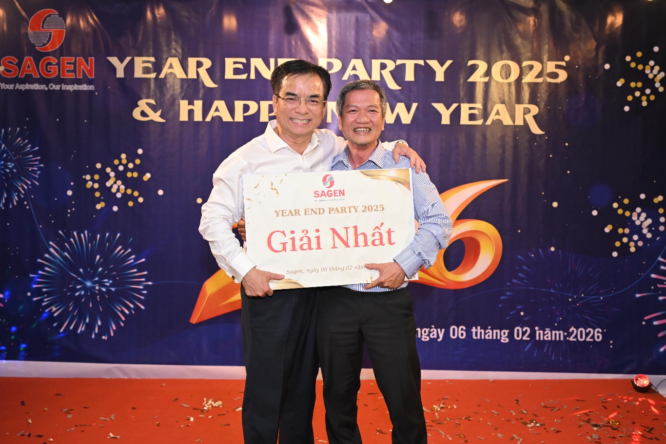 Year End Party 2025 của Công ty SAGEN, diễn ra vào ngày 06/02/2026, được tổ chức trong không khí trang trọng và ấm cúng, là dịp để Ban Lãnh đạo và toàn thể cán bộ nhân viên cùng nhìn lại chặng đường phát triển năm 2025, đồng thời chia sẻ định hướng chiến lược cho năm 2026.