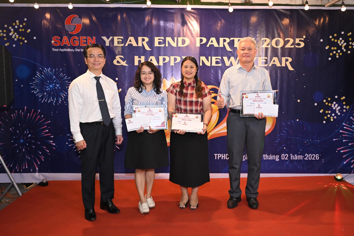 Trong khuôn khổ chương trình, Công ty đã trang trọng vinh danh các cá nhân và tập thể có thành tích nổi bật trong năm 2025. Hoạt động này không chỉ ghi nhận những đóng góp thiết thực, mà còn tạo động lực để tập thể Sagen tiếp tục phát huy năng lực và tinh thần trách nhiệm trong thời gian tới.